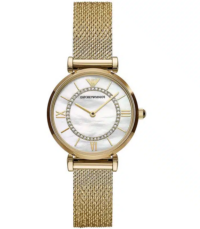 Montre pour Femme de la Marque : Emporio Armani – Référence : AR11321 – Fonctionnalités : Analogique – Mouvement : Quartz – Matière du boîtier : Acier inoxydable – Diamètre du boîtier : 32 mm – Matière du bracelet : Acier inoxydable – Largeur du bracelet : 14 mm – Type de verre : Minéral – Garantie : 2 ans Livré avec son coffret original, sac et certificat d’authenticité.