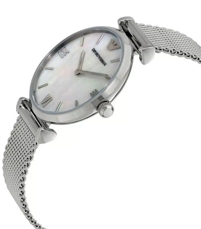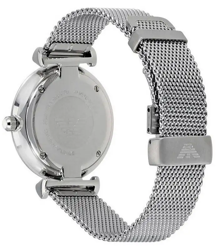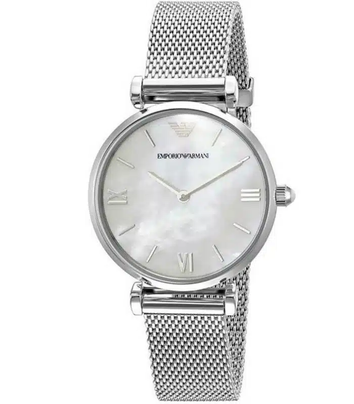 Montre pour Femme de la Marque : Emporio Armani – Référence : AR1955 – Fonctionnalités : Analogique – Mouvement : Quartz – Matière du boîtier : Acier inoxydable – Diamètre du boîtier : 32 mm – Matière du bracelet : Acier inoxydable – Largeur du bracelet : 14 mm – Type de verre : Minéral – Garantie : 2 ans Livré avec son coffret original, sac et certificat d’authenticité.