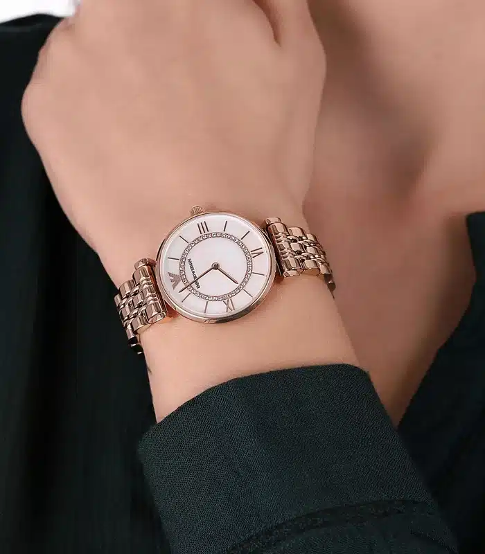 Montre pour Femme de la Marque : Emporio Armani – Référence : AR1909 – Fonctionnalités : Analogique – Mouvement : Quartz – Matière du boîtier : Acier inoxydable – Diamètre du boîtier : 32 mm – Matière du bracelet : Acier inoxydable – Largeur du bracelet : 14 mm – Type de verre : Minéral – Garantie : 2 ans Livré avec son coffret original, sac et certificat d’authenticité.