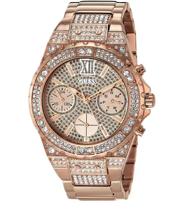 Montre pour Femme de la Marque : Guess – Référence : GW0037L3 – Fonctionnalités : Chronographe – Mouvement : Quartz – Matière du boîtier : Acier inoxydable – Diamètre du boîtier : 38 mm – Matière du bracelet : Acier inoxydable – Largeur du bracelet : 20 mm – Type de verre : Minéral – Garantie : 2 ans Livré avec son coffret original, sac et certificat d’authenticité.