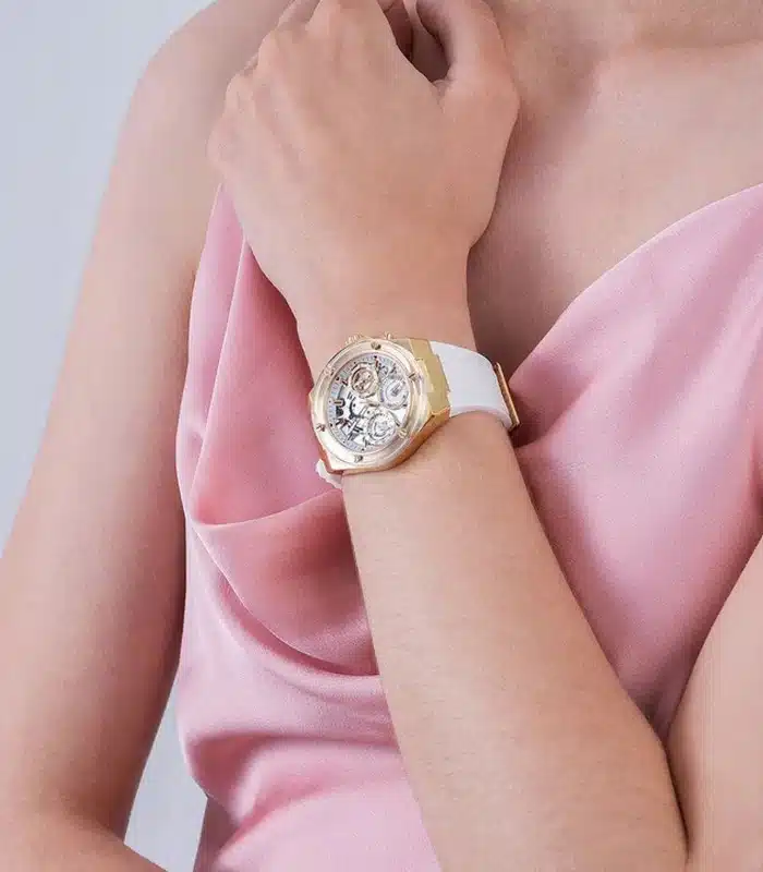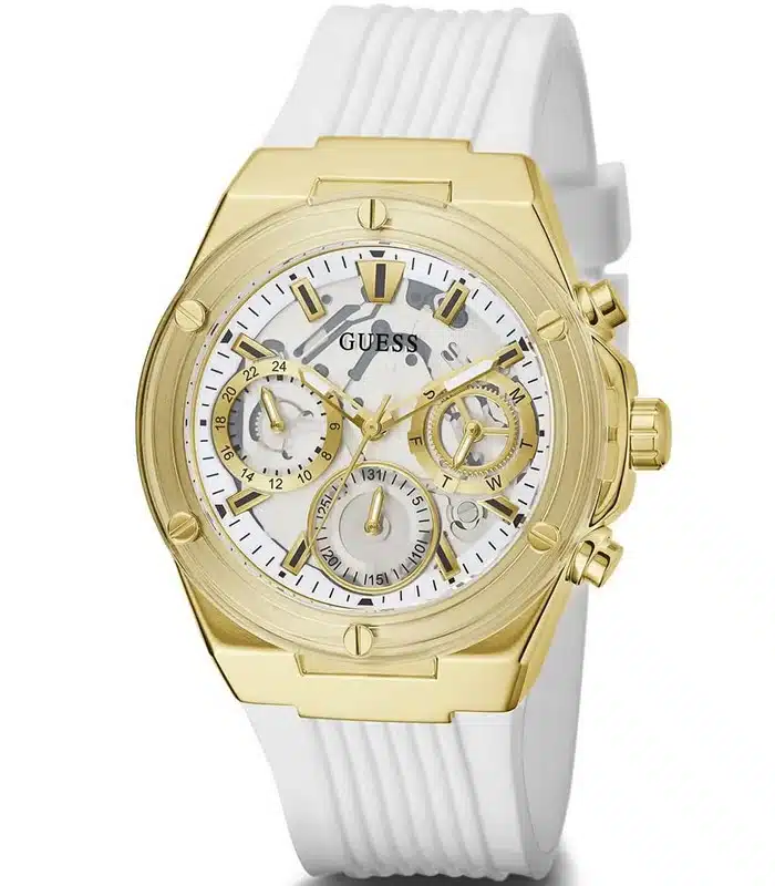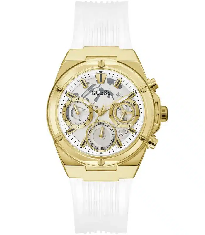 Montre pour Femme de la Marque : Guess – Référence : GW0409L2 – Fonctionnalités : Chronographe – Mouvement : Quartz – Matière du boîtier : Acier inoxydable – Diamètre du boîtier : 39 mm – Matière du bracelet : Silicone – Largeur du bracelet : 20 mm – Type de verre : Minéral – Garantie : 2 ans Livré avec son coffret original, sac et certificat d’authenticité.