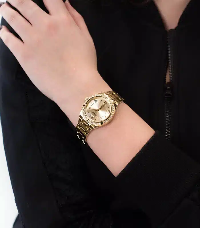 Montre pour Femme de la Marque : Guess – Référence : GW0033L2 – Fonctionnalités : Analogique – Mouvement : Quartz – Matière du boîtier : Acier inoxydable – Diamètre du boîtier : 36 mm – Matière du bracelet : Acier inoxydable – Largeur du bracelet : 18 mm – Type de verre : Minéral – Garantie : 2 ans Livré avec son coffret original, sac et certificat d’authenticité.