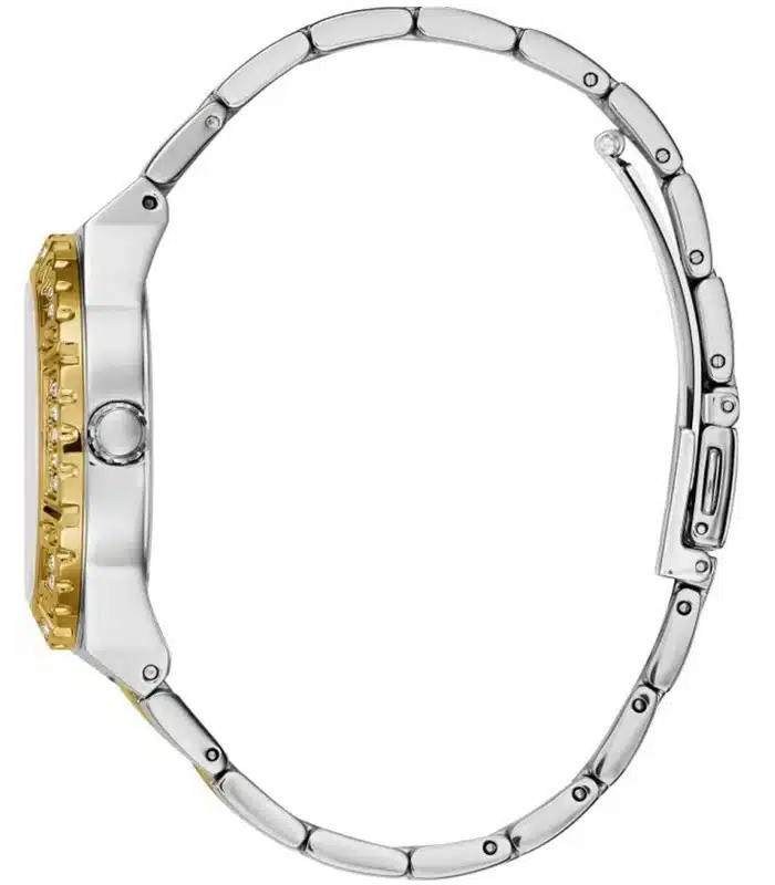 Montre pour Femme de la Marque : Guess – Référence : W0845L5 – Fonctionnalités : Chronographe – Mouvement : Quartz – Matière du boîtier : Acier inoxydable – Diamètre du boîtier : 36 mm – Matière du bracelet : Acier inoxydable – Largeur du bracelet : 18 mm – Type de verre : Minéral – Garantie : 2 ans Livré avec son coffret original, sac et certificat d’authenticité.