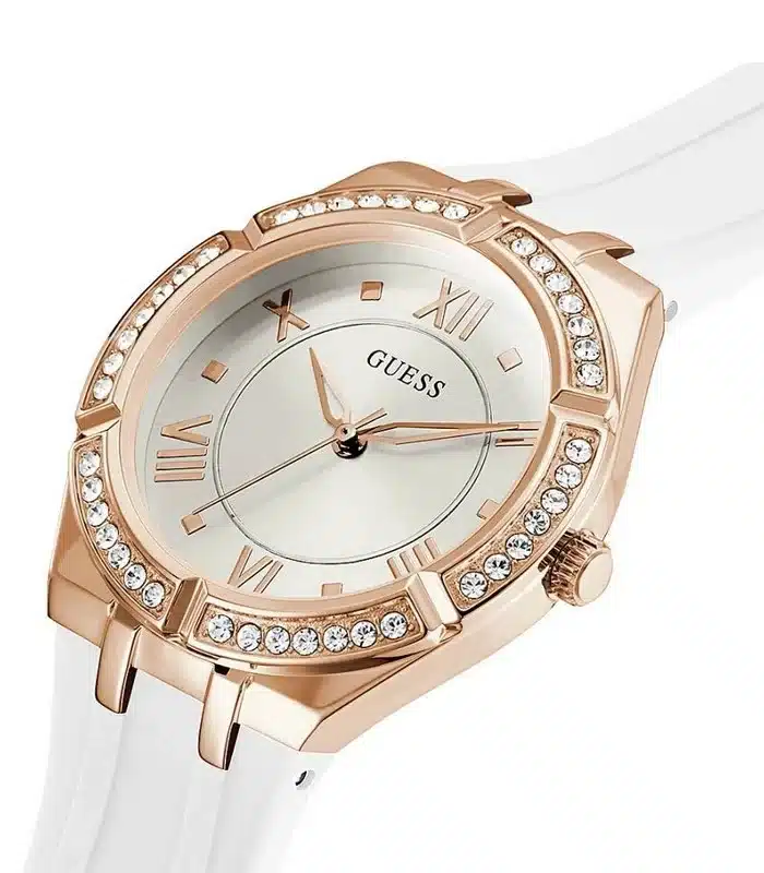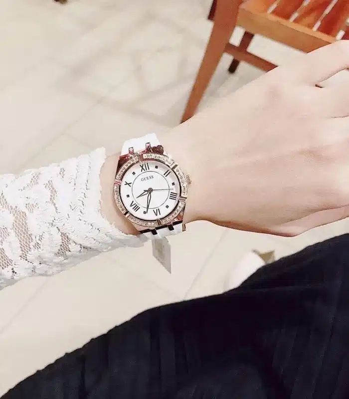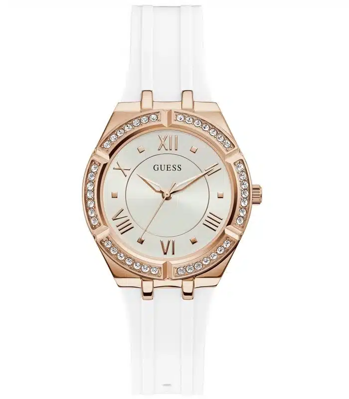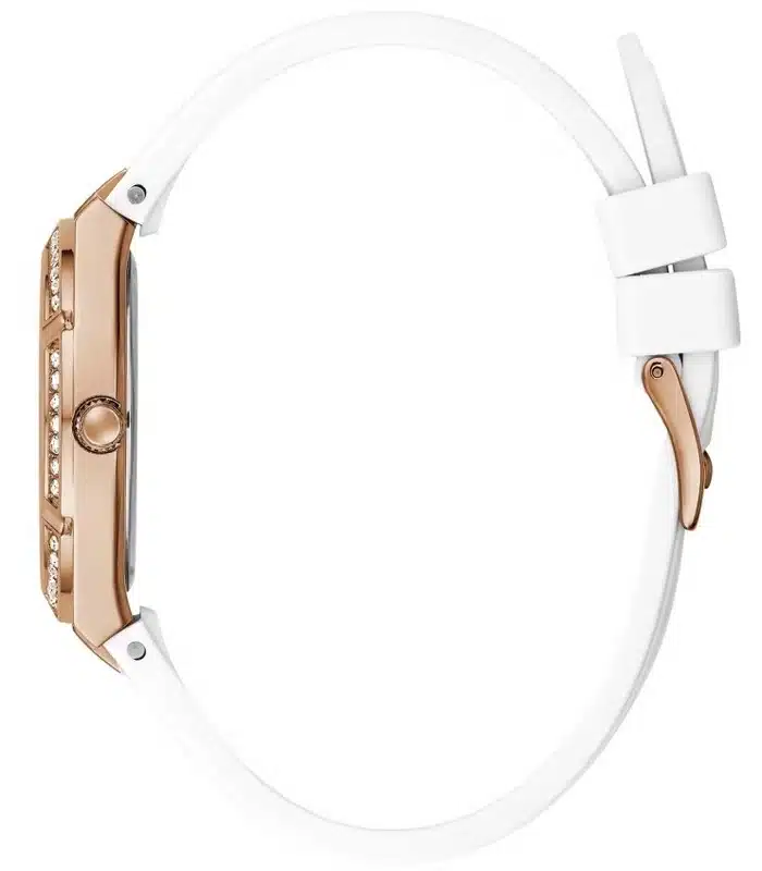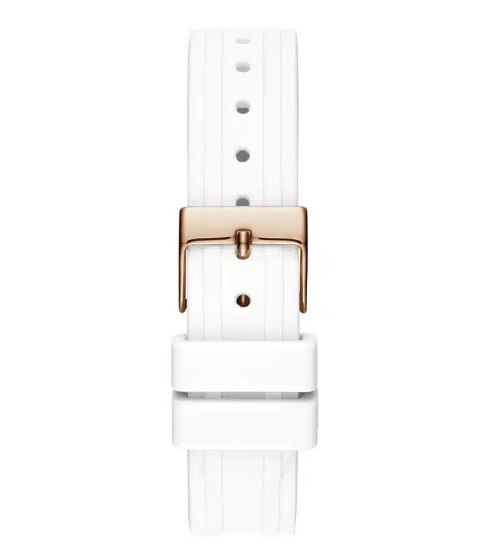 Montre pour Femme de la Marque : Guess – Référence : GW0034L2 – Fonctionnalités : Analogique – Mouvement : Quartz – Matière du boîtier : Acier inoxydable – Diamètre du boîtier : 36 mm – Matière du bracelet : Silicone – Largeur du bracelet : 15 mm – Type de verre : Minéral – Garantie : 2 ans Livré avec son coffret original, sac et certificat d’authenticité.