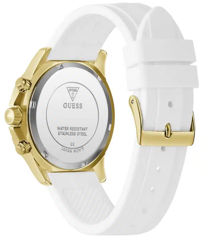 Montre pour Femme de la Marque : Guess – Référence : GW0772L3 – Fonctionnalités : Chronographe – Mouvement : Quartz – Matière du boîtier : Acier inoxydable – Diamètre du boîtier : 40 mm – Matière du bracelet : Silicone – Largeur du bracelet : 20 mm – Type de verre : Minéral – Garantie : 2 ans Livré avec son coffret original, sac et certificat d’authenticité.