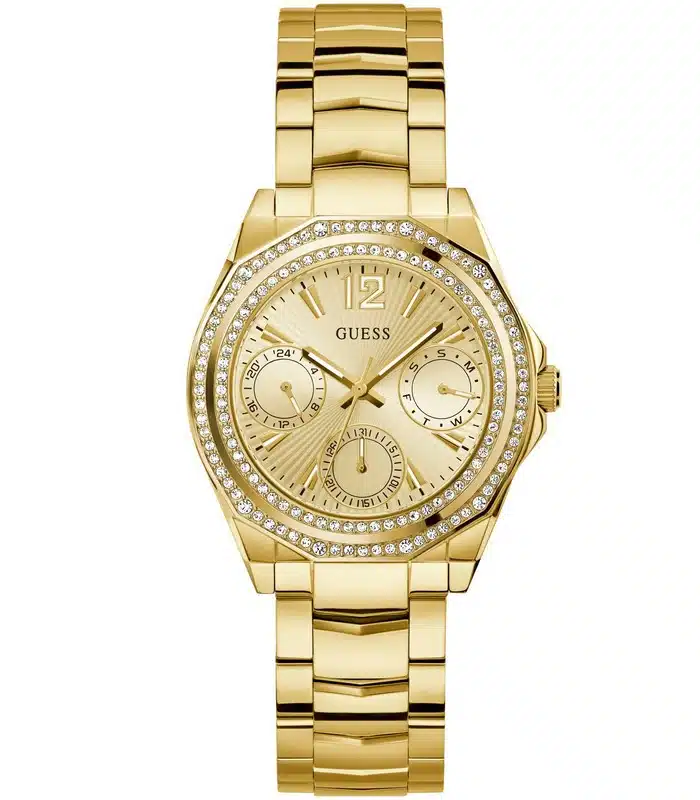 Montre pour Femme de la Marque : Guess – Référence : GW0685L2 – Fonctionnalités : Chronographe – Mouvement : Quartz – Matière du boîtier : Acier inoxydable – Diamètre du boîtier : 36 mm – Matière du bracelet : Acier inoxydable – Largeur du bracelet : 18 mm – Type de verre : Minéral – Garantie : 2 ans Livré avec son coffret original, sac et certificat d’authenticité.