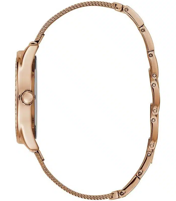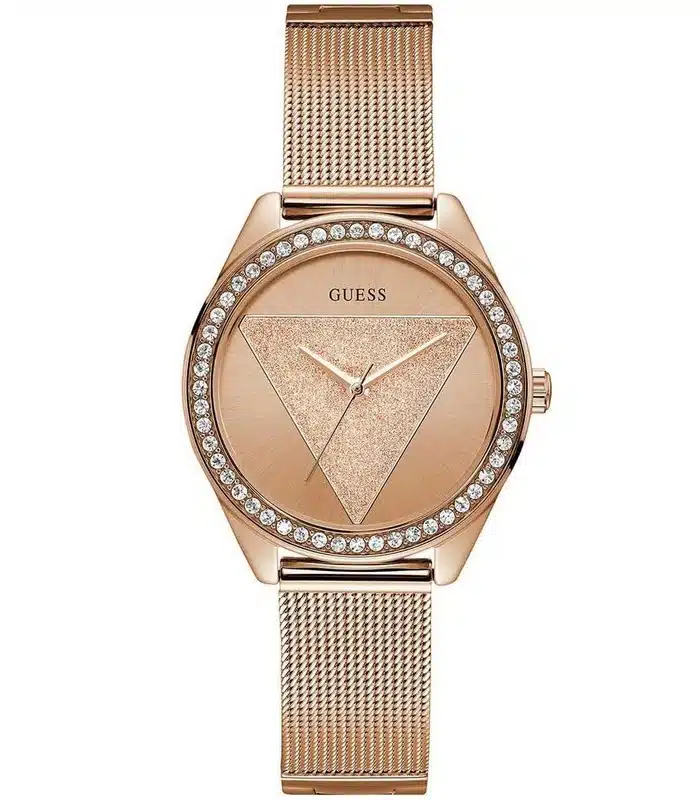 Montre pour Femme de la Marque : Guess – Référence : W1142L4 – Fonctionnalités : Analogique – Mouvement : Quartz – Matière du boîtier : Acier inoxydable – Diamètre du boîtier : 36 mm – Matière du bracelet : Acier inoxydable – Largeur du bracelet : 18 mm – Type de verre : Minéral – Garantie : 2 ans Livré avec son coffret original, sac et certificat d’authenticité.