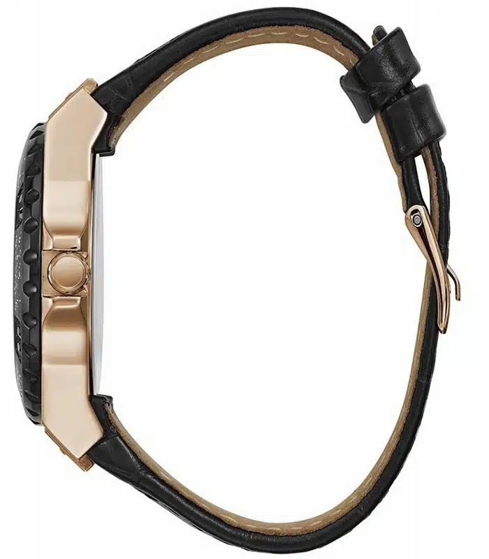 Montre pour Femme de la Marque : Guess – Référence : W0775L9 – Fonctionnalités : Chronographe – Mouvement : Quartz – Matière du boîtier : Acier inoxydable – Diamètre du boîtier : 38 mm – Matière du bracelet : Cuir – Largeur du bracelet : 18 mm – Type de verre : Minéral – Garantie : 2 ans Livré avec son coffret original, sac et certificat d’authenticité.