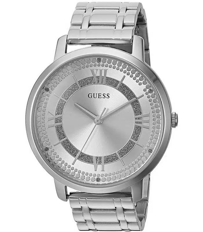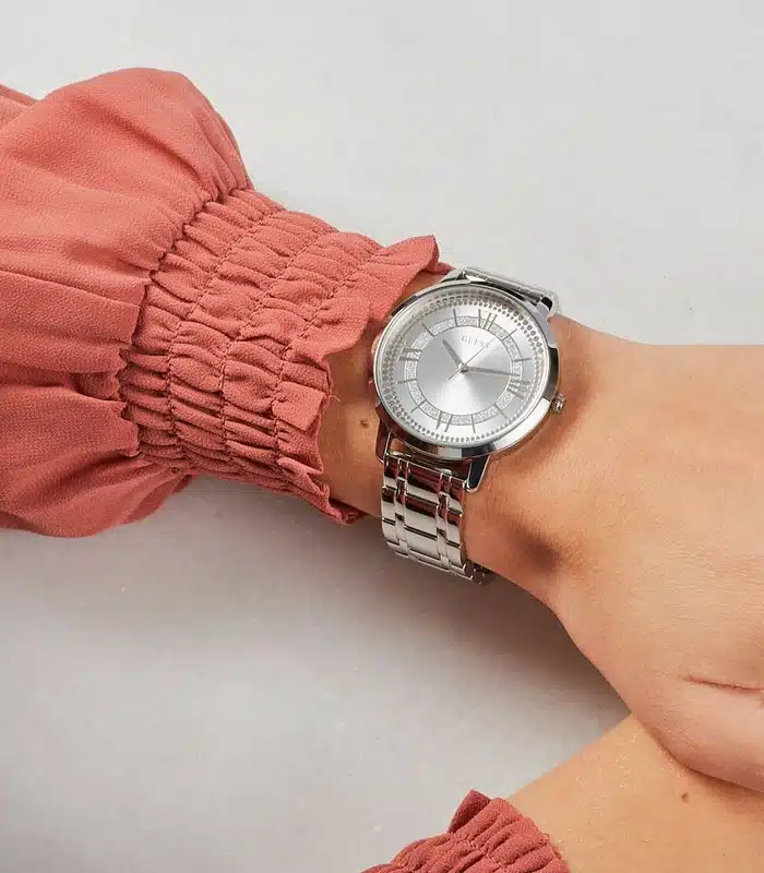 Montre pour Femme de la Marque : Guess – Référence : W0933L1 – Fonctionnalités : Analogique – Mouvement : Quartz – Matière du boîtier : Acier inoxydable – Diamètre du boîtier : 40 mm – Matière du bracelet : Acier inoxydable – Largeur du bracelet : 18 mm – Type de verre : Minéral – Garantie : 2 ans Livré avec son coffret original, sac et certificat d’authenticité.