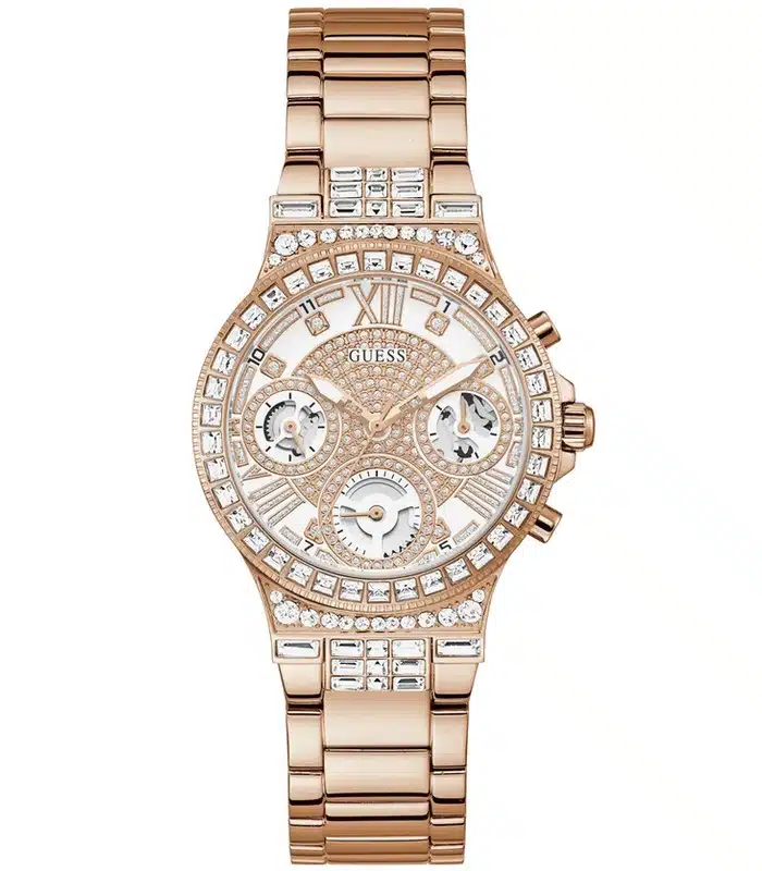 Montre pour Femme de la Marque : Guess – Référence : GW0320L3 – Fonctionnalités : Chronographe – Mouvement : Quartz – Matière du boîtier : Acier inoxydable – Diamètre du boîtier : 36 mm – Matière du bracelet : Acier inoxydable – Largeur du bracelet : 18 mm – Type de verre : Minéral – Garantie : 2 ans Livré avec son coffret original, sac et certificat d’authenticité.