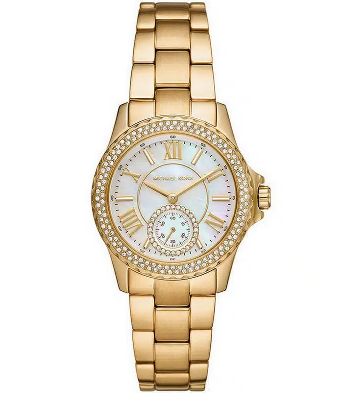 Montre pour Femme de la Marque : Michael Kors – Référence : MK7363 – Fonctionnalités : Chronographe – Mouvement : Quartz – Matière du boîtier : Acier inoxydable – Diamètre du boîtier : 33 mm – Matière du bracelet : Acier inoxydable – Largeur du bracelet : 18 mm – Type de verre : Minéral – Garantie : 2 ans Livré avec son coffret original, sac et certificat d’authenticité.