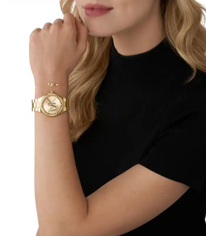 Montre pour Femme de la Marque : Michael Kors – Référence : MK1062SET – Fonctionnalités : Analogique – Mouvement : Quartz – Matière du boîtier : Acier inoxydable – Diamètre du boîtier : 37 mm – Matière du bracelet : Acier inoxydable – Largeur du bracelet : 20 mm – Type de verre : Minéral – Garantie : 2 ans Livré avec son coffret original, sac et certificat d’authenticité.