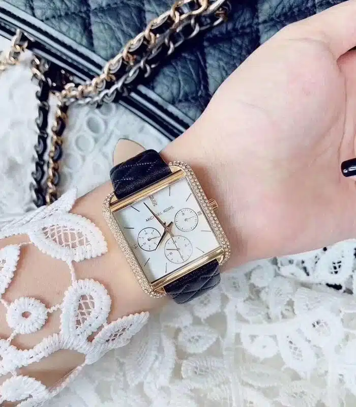 Montre pour Femme de la Marque : Michael Kors – Référence : MK2769 – Fonctionnalités : Chronographe – Mouvement : Quartz – Matière du boîtier : Acier inoxydable – Diamètre du boîtier : 35 mm – Matière du bracelet : Cuir – Largeur du bracelet : 20 mm – Type de verre : Minéral – Garantie : 2 ans Livré avec son coffret original, sac et certificat d’authenticité.