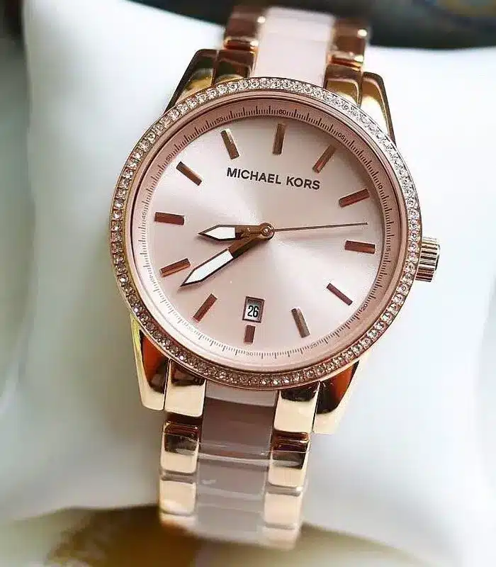 Montre pour Femme de la Marque : Michael Kors – Référence : MK6349 – Fonctionnalités : Analogique – Mouvement : Quartz – Matière du boîtier : Acier inoxydable – Diamètre du boîtier : 37 mm – Matière du bracelet : Acier inoxydable et Céramique – Largeur du bracelet : 18 mm – Type de verre : Minéral – Garantie : 2 ans Livré avec son coffret original, sac et certificat d’authenticité.