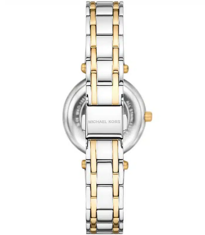 Montre pour Femme de la Marque : Michael Kors – Référence : MKo1085 – Fonctionnalités : Analogique – Mouvement : Quartz – Matière du boîtier : Acier inoxydable – Diamètre du boîtier : 30 mm – Matière du bracelet : Acier inoxydable – Largeur du bracelet : 14 mm – Type de verre : Minéral – Garantie : 2 ans Livré avec son coffret original, sac et certificat d’authenticité.