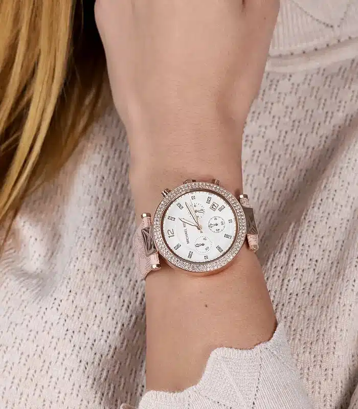 Montre pour Femme de la Marque : Michael Kors – Référence : MK6935 – Fonctionnalités : Chronographe – Mouvement : Quartz – Matière du boîtier : Acier inoxydable – Diamètre du boîtier : 39 mm – Matière du bracelet : Cuir – Largeur du bracelet : 20 mm – Type de verre : Minéral – Garantie : 2 ans Livré avec son coffret original, sac et certificat d’authenticité.