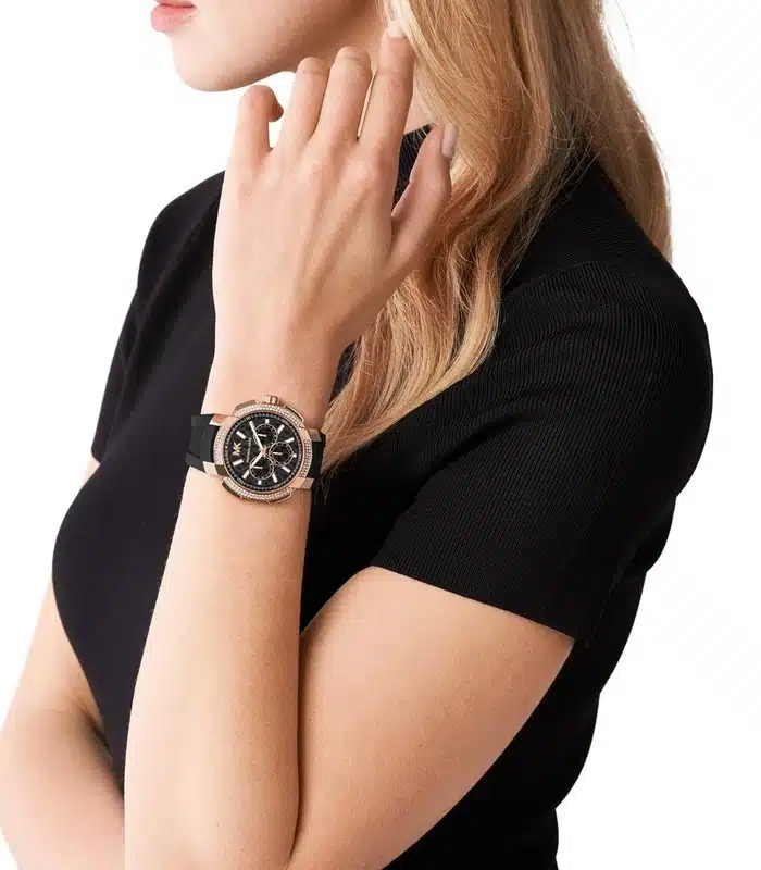 Montre pour Femme de la Marque : Michael Kors – Référence : MK7245 – Fonctionnalités : Chronographe – Mouvement : Quartz – Matière du boîtier : Acier inoxydable – Diamètre du boîtier : 42 mm – Matière du bracelet : Silicone – Largeur du bracelet : 20 mm – Type de verre : Minéral – Garantie : 2 ans Livré avec son coffret original, sac et certificat d’authenticité.
