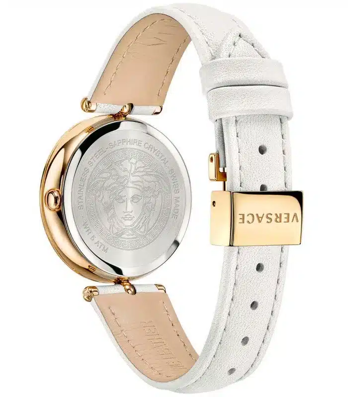 Montre pour Femme de la Marque : Versace – Référence : VECQ00218 – Fonctionnalités : Analogique – Mouvement : Quartz – Matière du boîtier : Acier inoxydable – Diamètre du boîtier : 39 mm – Matière du bracelet : Cuir – Largeur du bracelet : 16 mm – Type de verre : Saphir – Garantie : 2 ans Livré avec son coffret original, sac et certificat d’authenticité.
